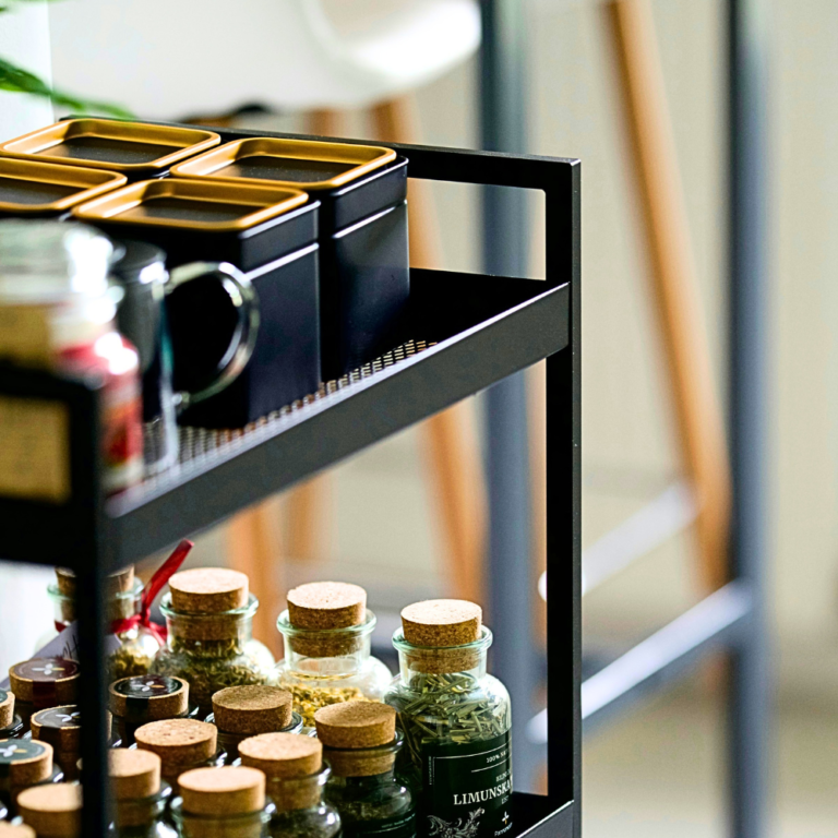 Keeping coffee supplies in one place makes mornings easier and helps keep the kitchen from feeling cluttered.