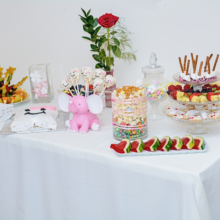 Place the snack and drink station slightly away from the main seating area so guests can refill drinks without interrupting conversations.